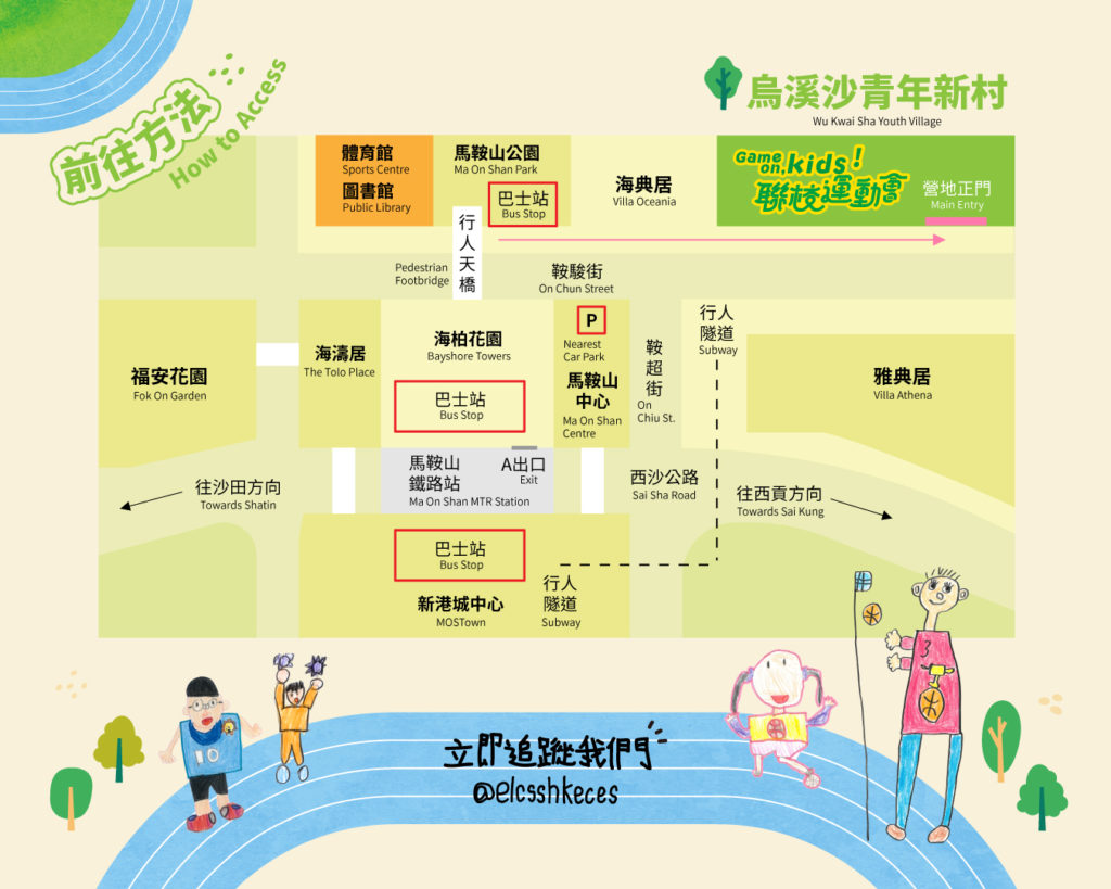 專線 810沙田偉華中心(新城市廣場)開出,在鞍駿街總站外的烏溪沙青年新村營地正門下車,即可抵達。